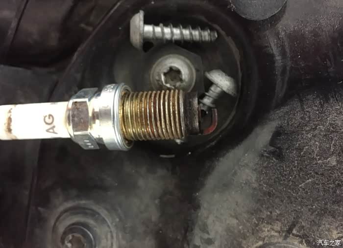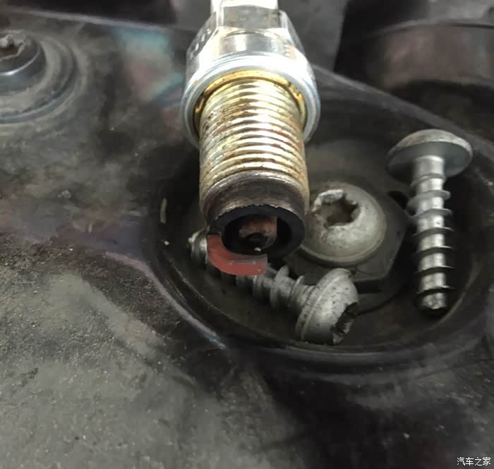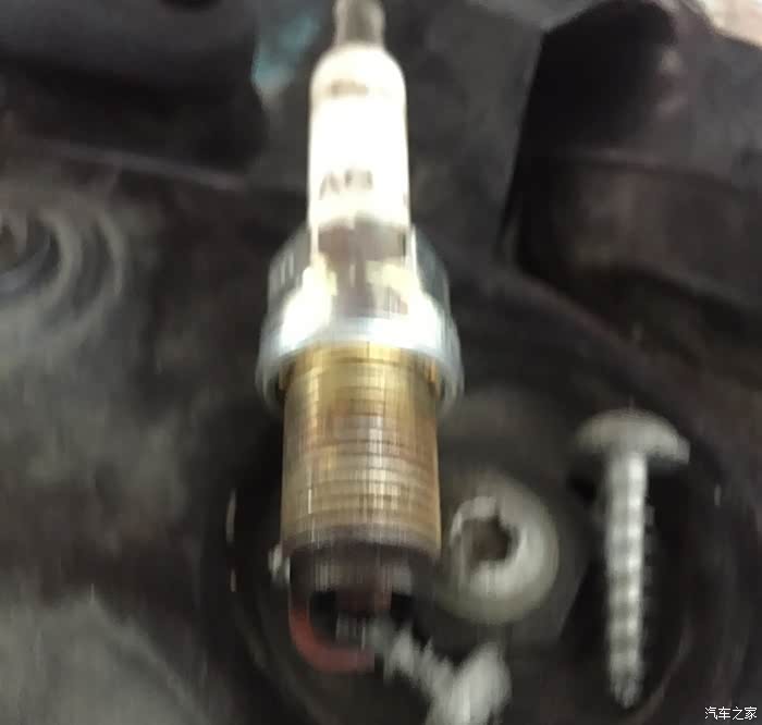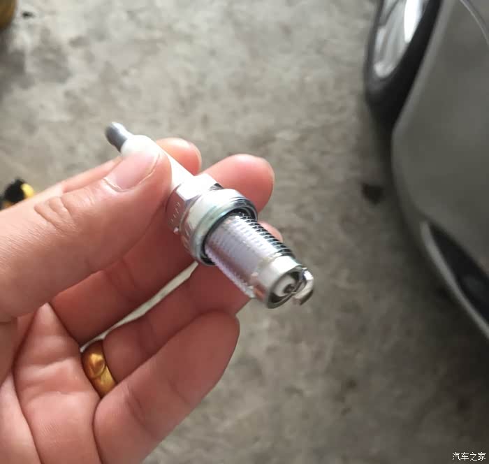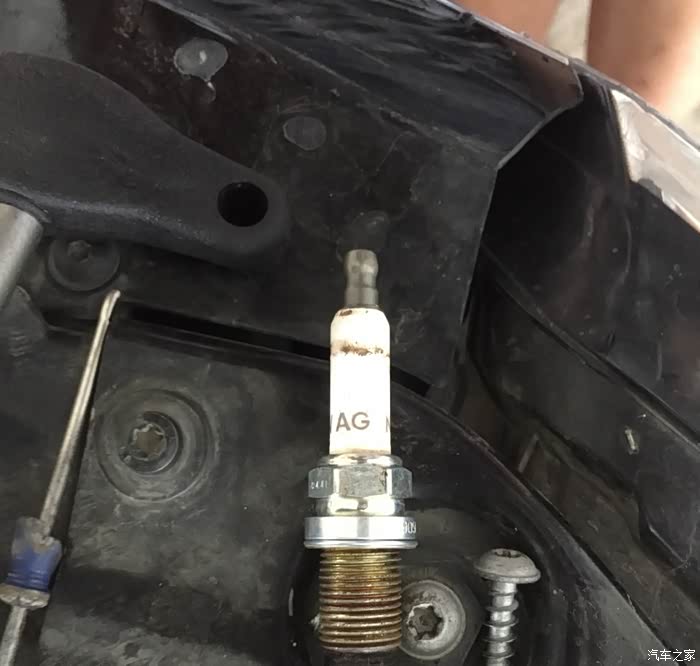 第一个拔下来就都好拔了,然后用一个类似螺丝刀的东西再把火花塞拿出来。一拿出来不要紧,看这个样子烧的也挺厉害啊,不知道还能跑多少公里。听说专业的用工具可以测火花塞间隙的长度,长度短了慢慢闭合就快不能用了