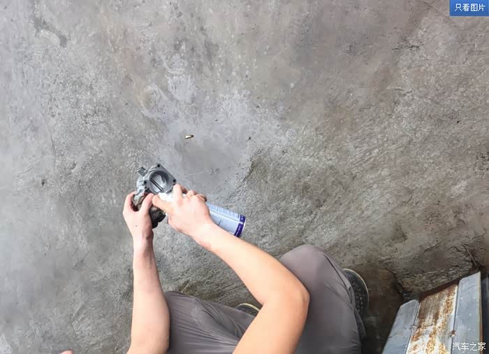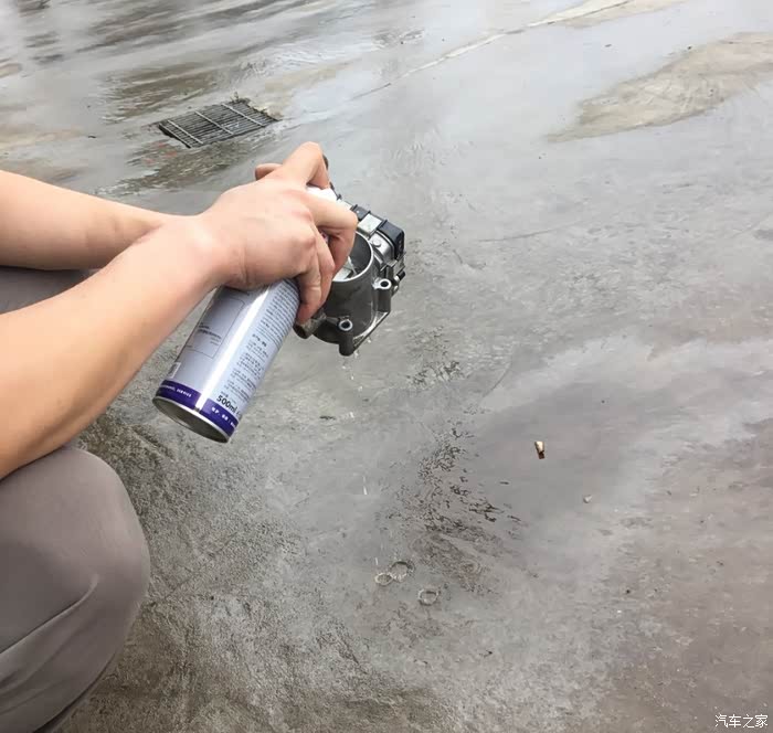 然后就是用伍尔特喷丫喷,节气门前面和刚刚看到的一样,干净。后面稍微有油渍,但是没有积碳。只有中间那扇东西和壁上有积碳。黑色的,反正就是一阵喷,外面也喷。用了差不多半瓶,就干净了。然后用气嘴喷了喷,把多余的油油喷掉,听说节气门里的油其实可以燃烧。但是还是喷掉保险。