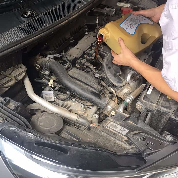 308的车主过来问我机油加了多少,小哥说加了一瓶,308的车子是自吸的加不了那么多,一片还多一个矿泉水瓶,因为4S店送的保养,所以没加钱换达道尔的机油!带T的心脏一瓶刚好!