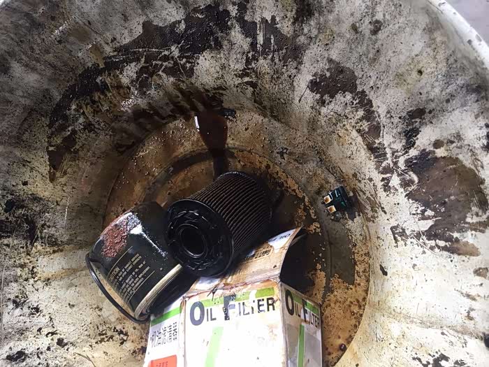卸下来的机油滤清,有点污,不过我现在看别人车上换的为什么都是铁罐的,是有什么更好嘛?
