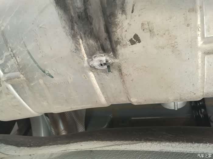 我只是在意车友提及的出厂时轮胎气压过高问题,4个轮子都检查一遍,都不高,心中欢喜。在车辆升起时,拍照了消音器尾端那个排水孔(在消音器大包的中间最低点),搞清楚了尾气冷凝水排水机制。