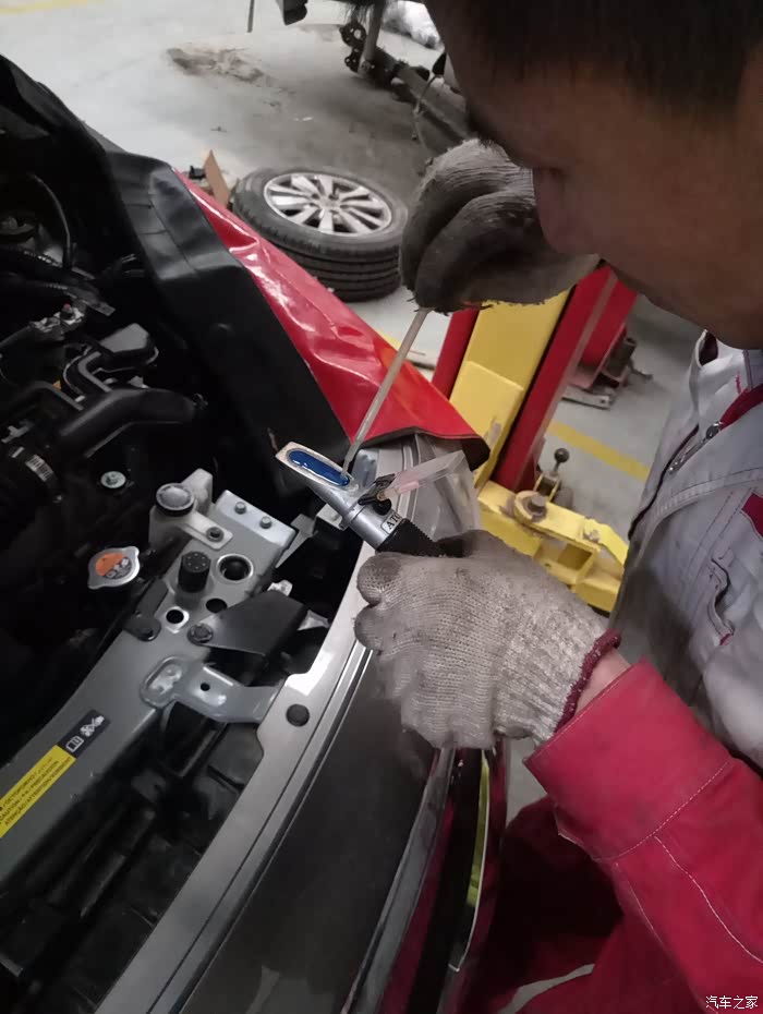 接下来开始介绍下保养过程,其中,额要求了要检查下防冻液的冰点,现也提供大家看下。