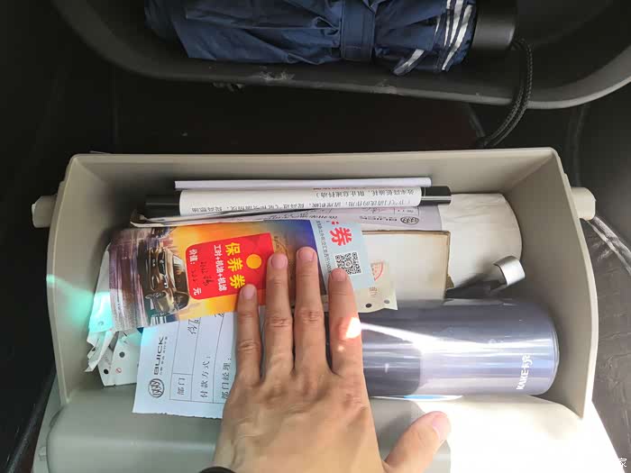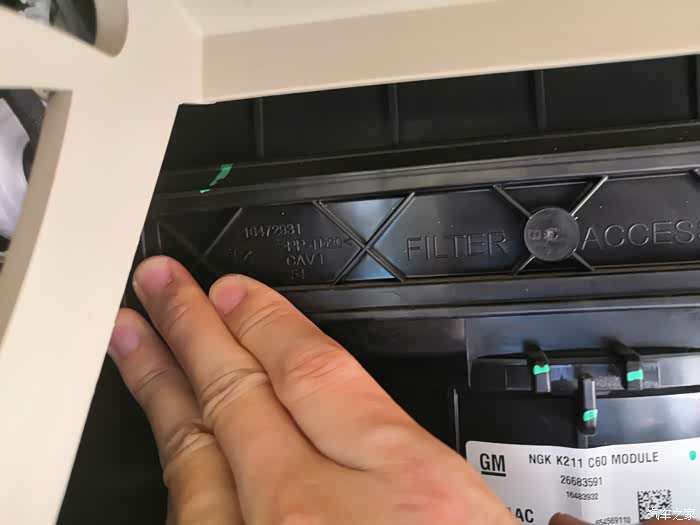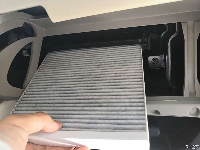先看空气滤芯吧,就在副驾驶的扶手箱里面。