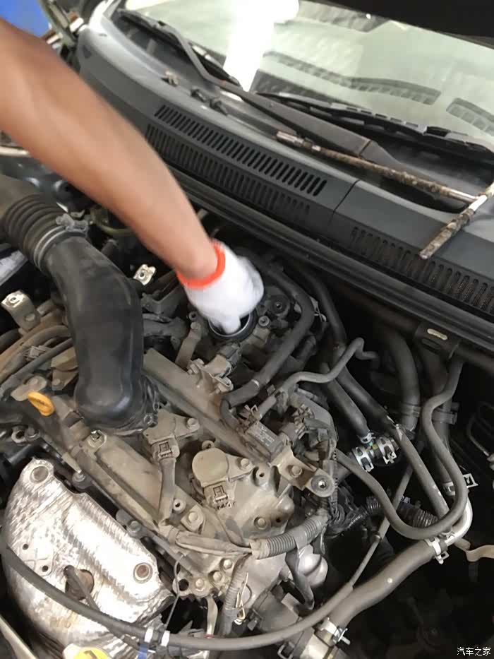 陪伴了10年的小威,检查前铺上防护垫,估计是防止作业时??啥的碰到,师傅检查了一下机舱线路,没有裸露的线,细心的师傅把点火线圈上??给我都紧了一下,10年前机舱布局没现在的威驰这么美观,你们觉得呢?
