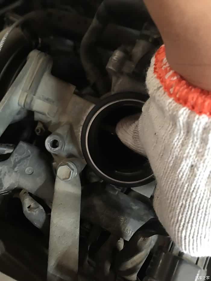 师傅在认真的给我清洁节气门,车子老了,积炭还真不少了,跑跑高速应该会好点。