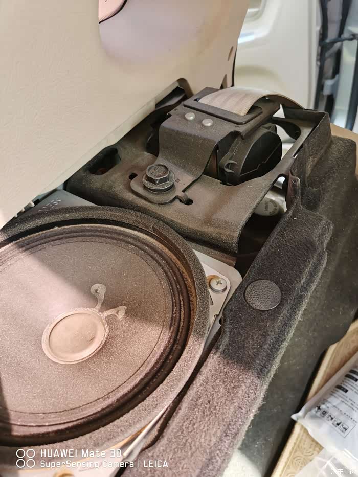 再把安全带的固定螺丝松了,这样工具好拆减震顶上的三个螺丝