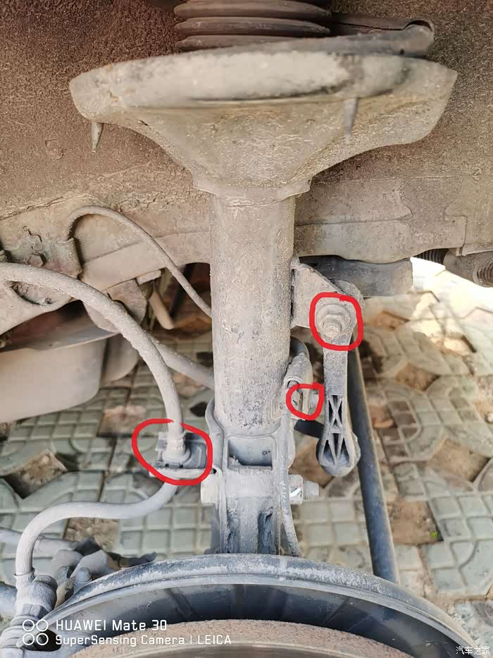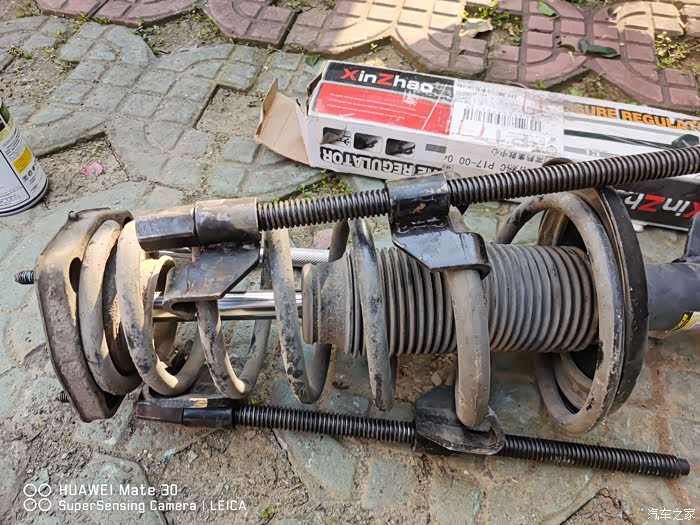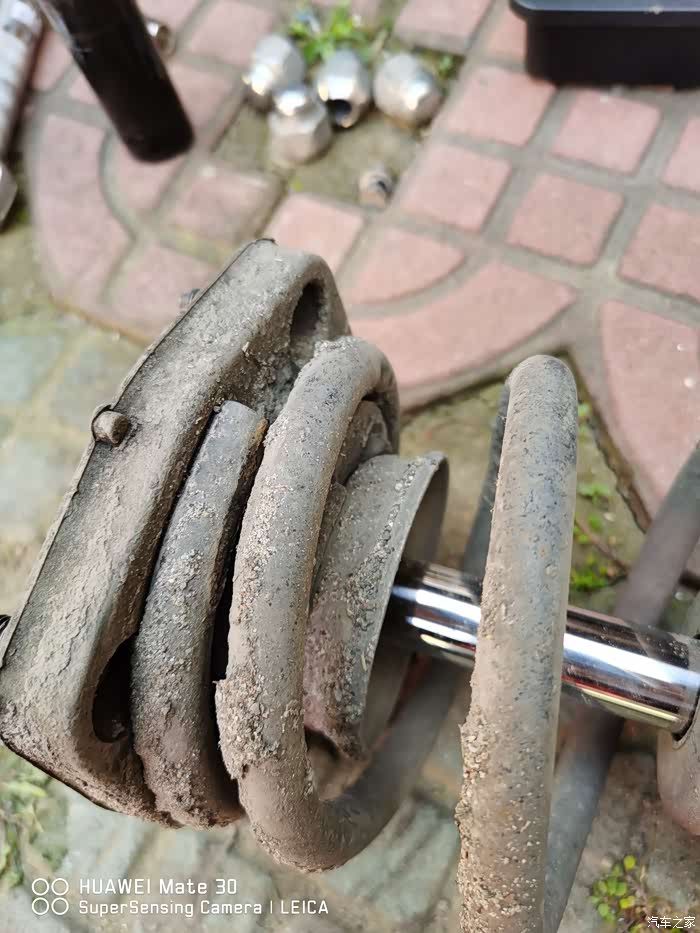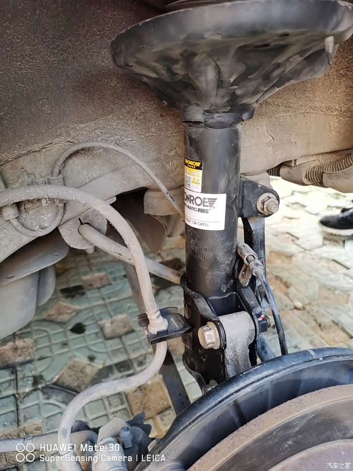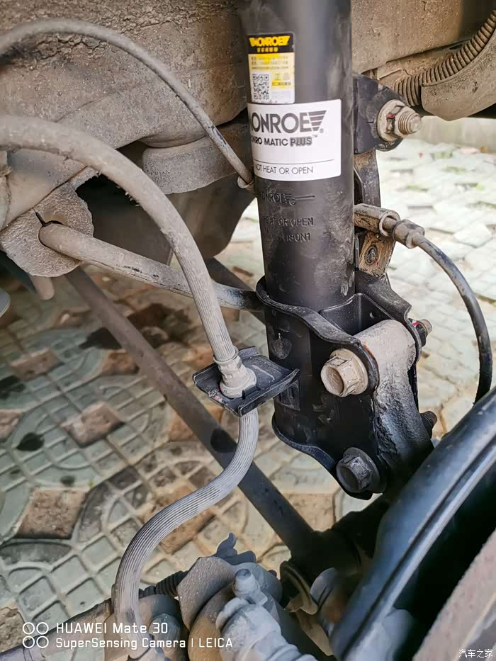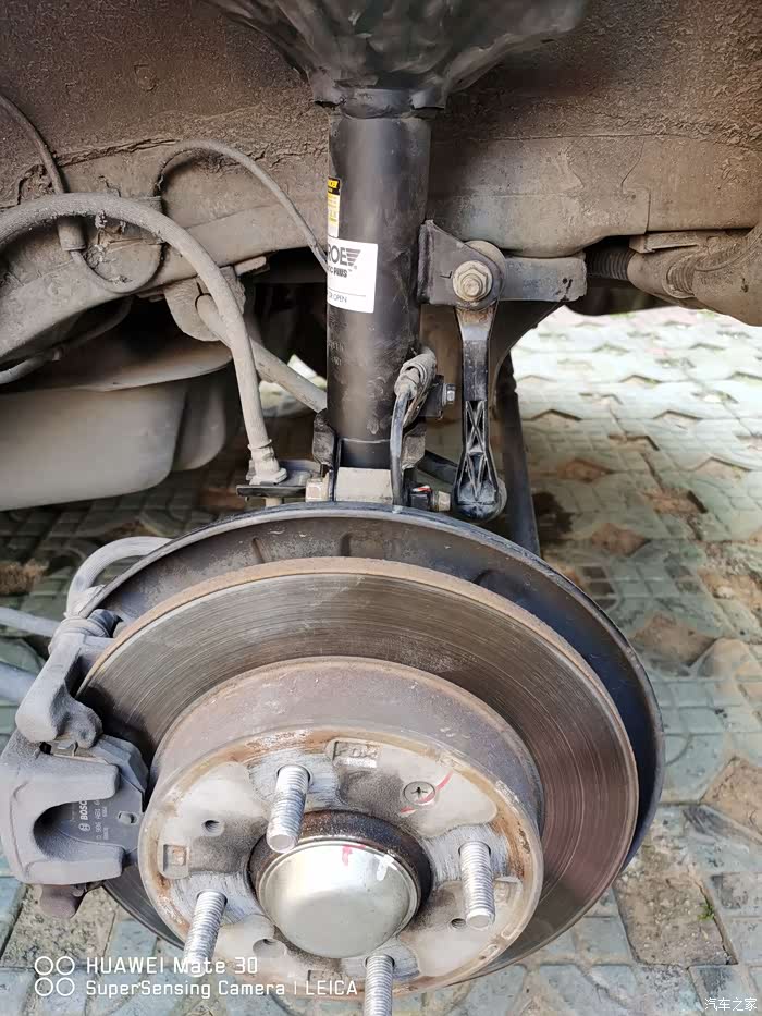 突然发现还有一个传感器的螺丝紧了,但没把卡子放里吧,糗大了,然后再把顶上的三个小螺帽紧固,减震器就安装完成了,装上轮子恢复原状,前前后后共花了一个半小时左右,这速度自我感觉还可以