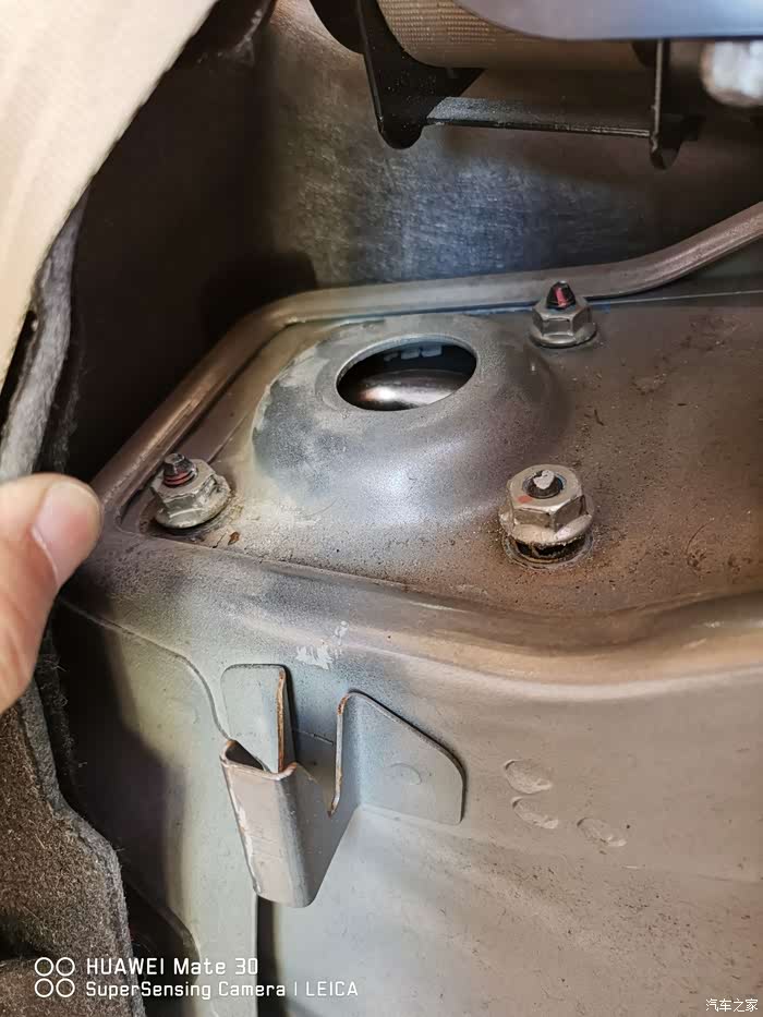 找到固定减震的两个螺丝,必须把后座靠门的两个长条的靠垫拆了,拆了就能看到这三个螺丝了