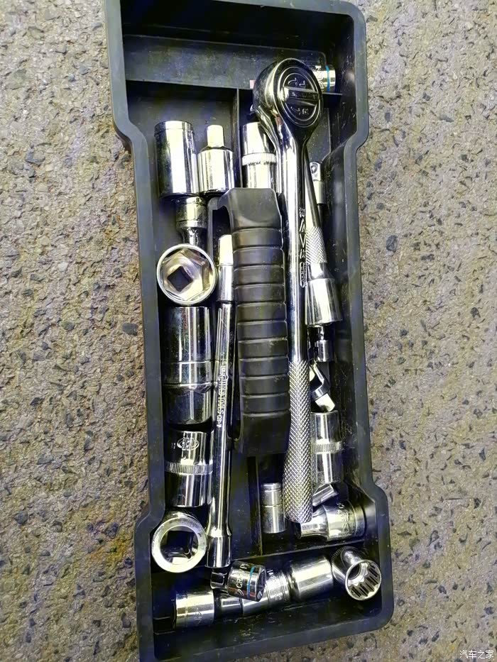 下面是用到的工具,从10mm到21mm的套筒,另加随车工具