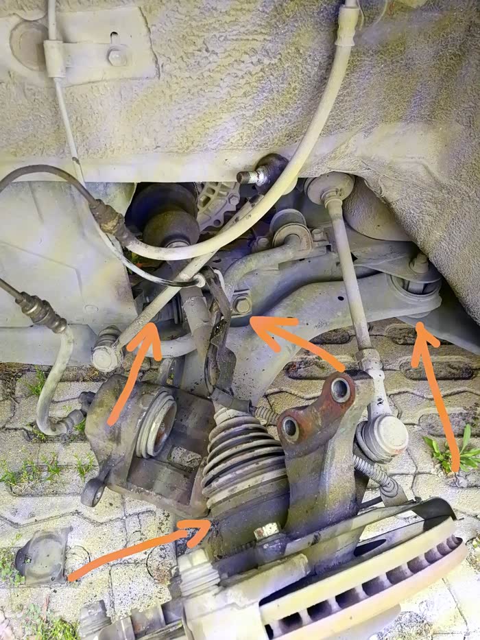 拆下减震器总成后,先用WD-40把三臂的固定螺丝润滑,最大程度防止拆的过程中螺丝咬死