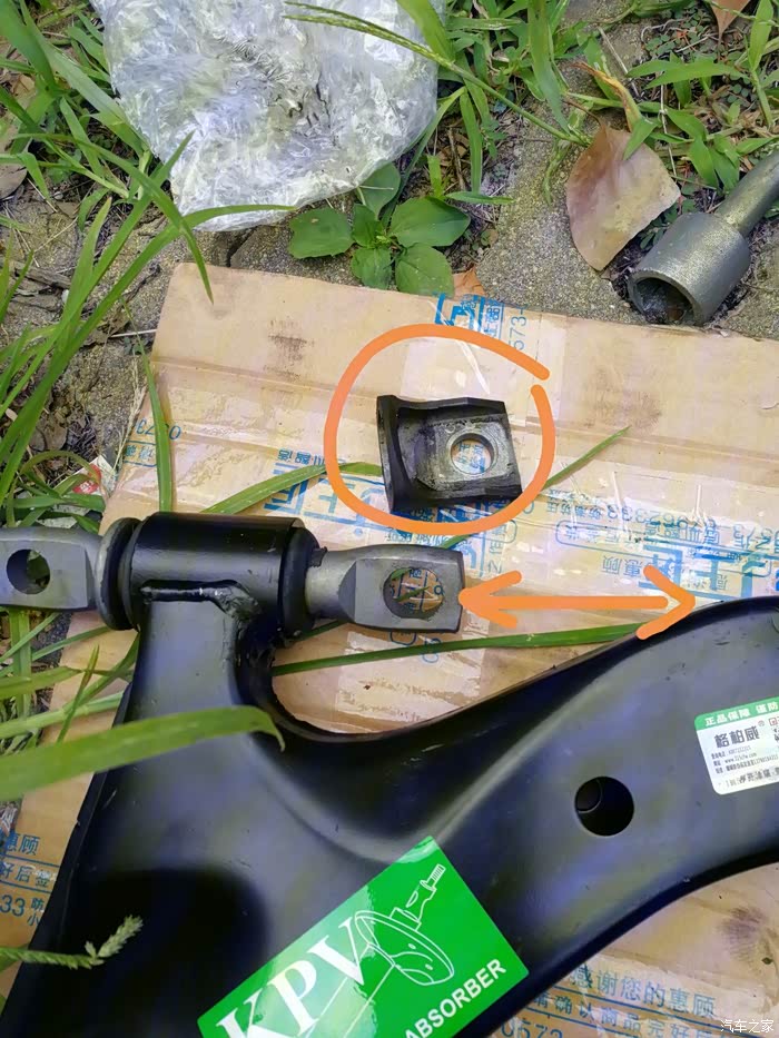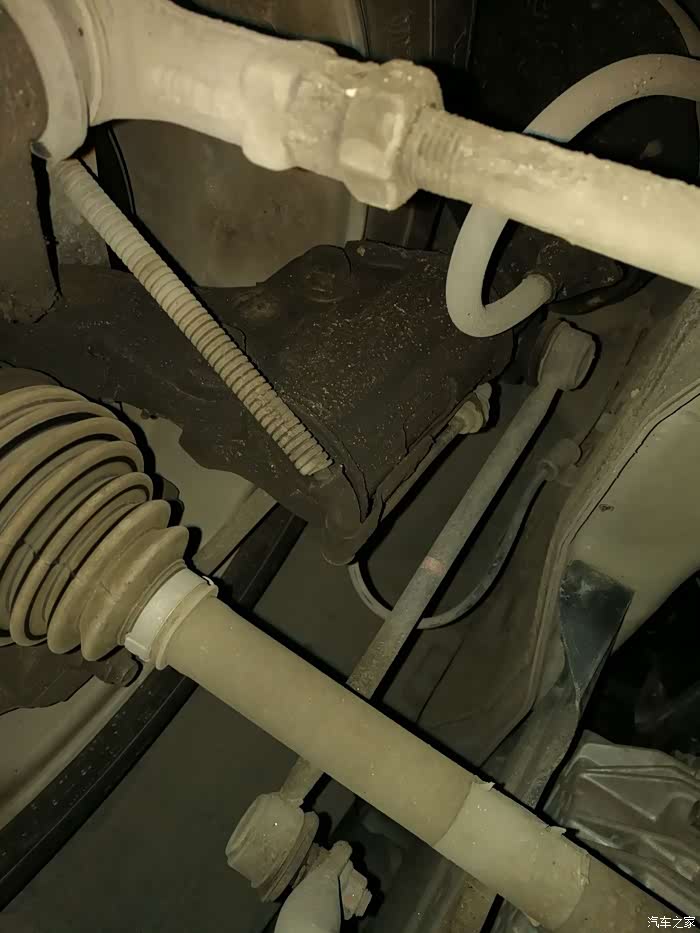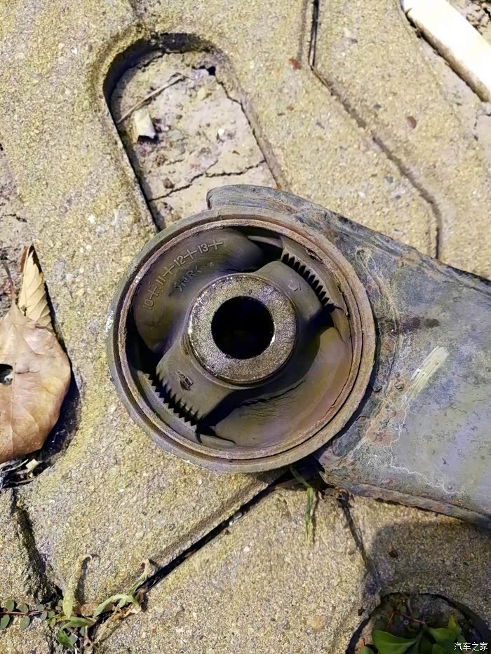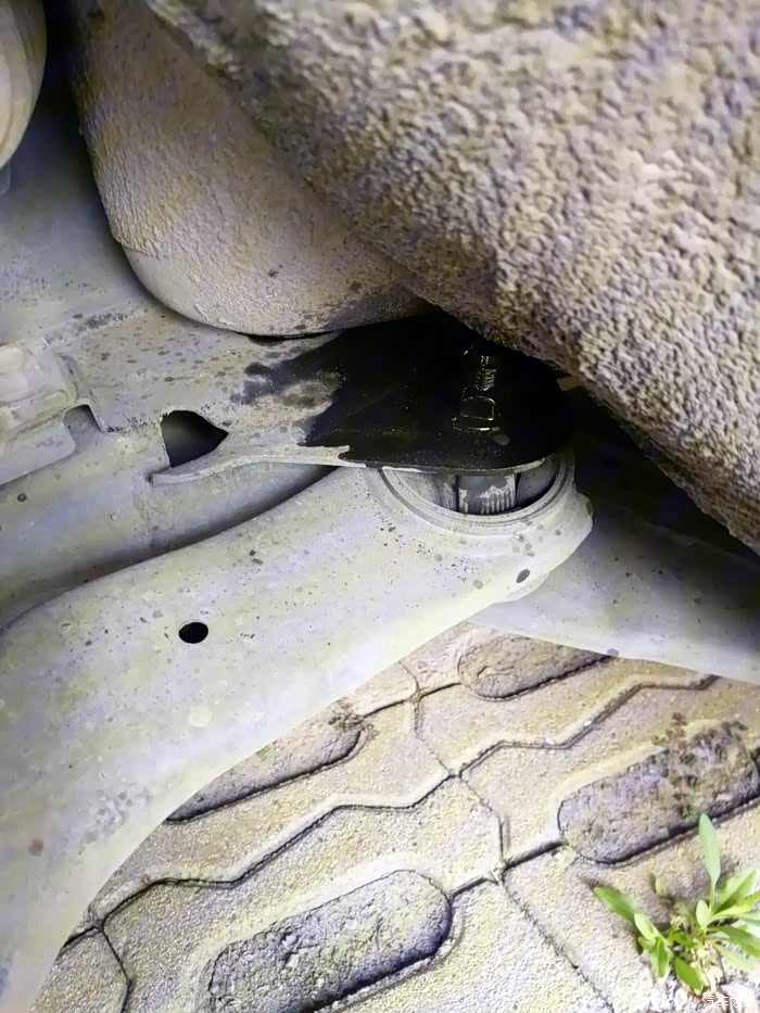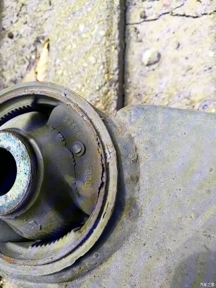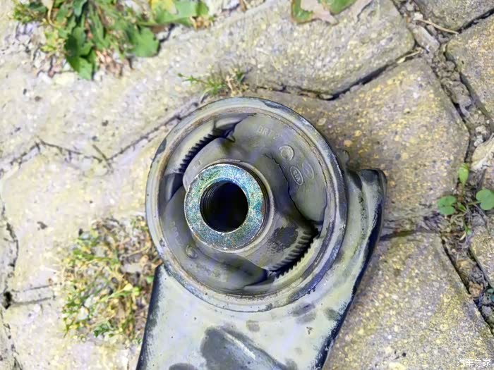 后来在坛子里看到有图友把三角臂也换掉的贴子,想想自己的欧风也8年了,而且前阵子也因为发动机脚老化抖动把机脚也换了(换下来的机脚惨不忍睹),于是就趁着换机油的机会检查了下三角臂,发现上面的橡胶件也老老化开裂了,没有条件只换三角臂胶套,所以只能考虑换总成了