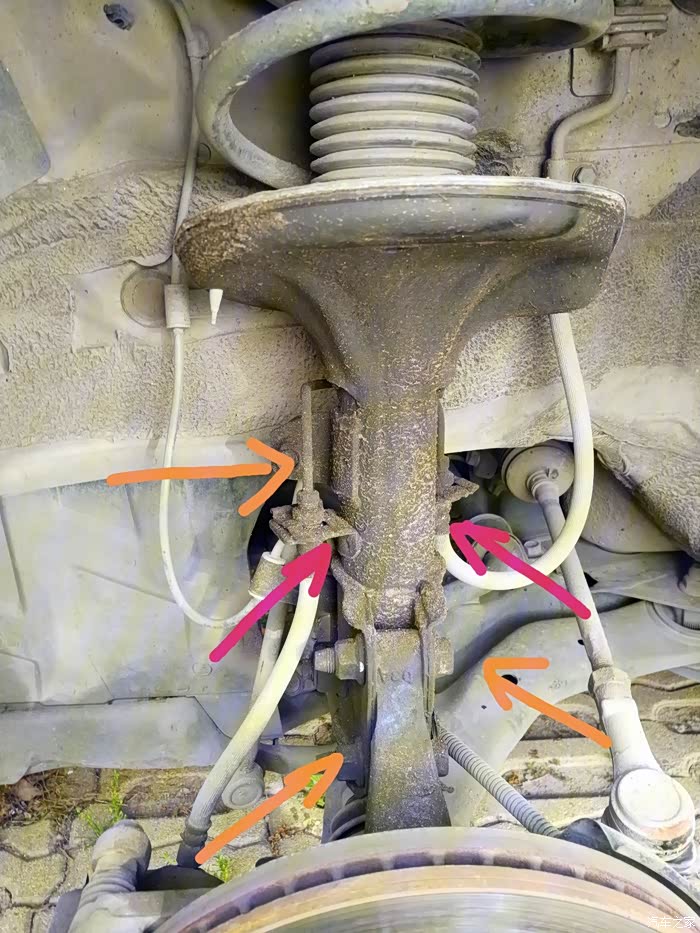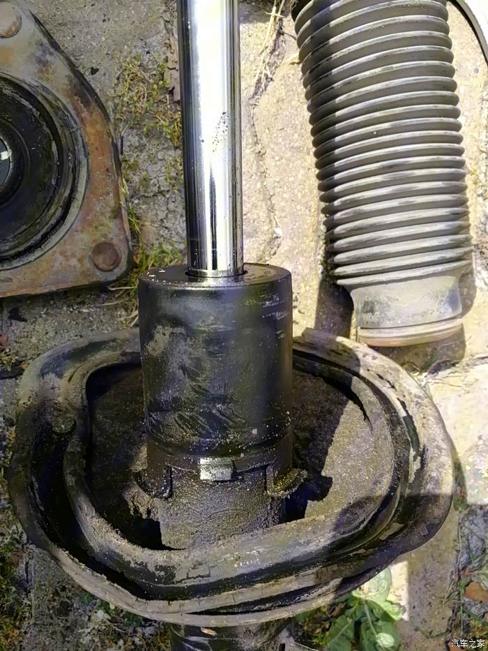 这也是我左前先漏油的原因,因为之前换过左前的球笼后没把减震器一起松,就直接紧上了,所以过了一两个月就漏了