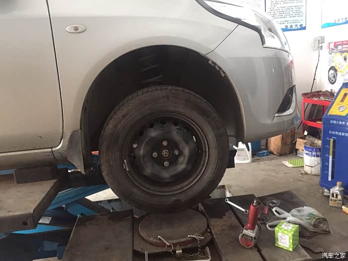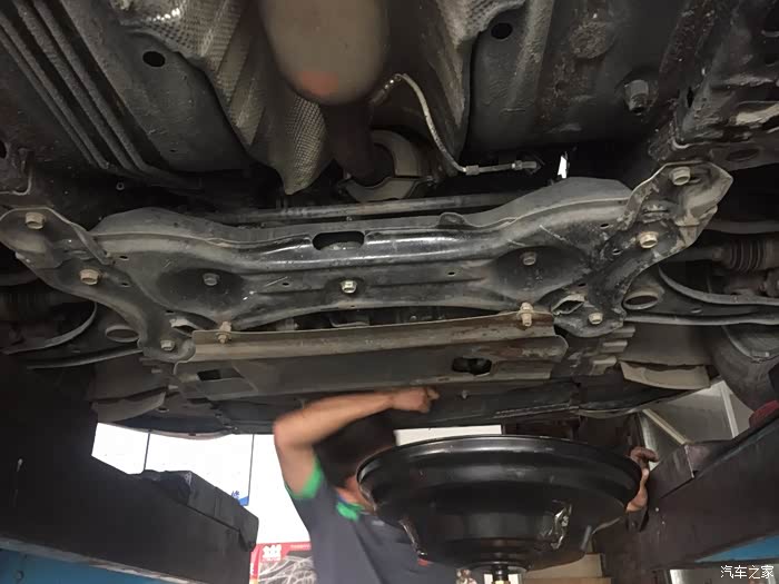 师傅在放油,顺便自己检查一下底盘,看看有没磕碰松动什么的。