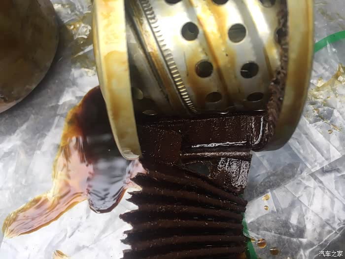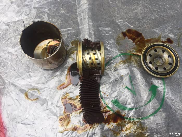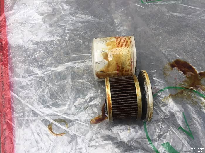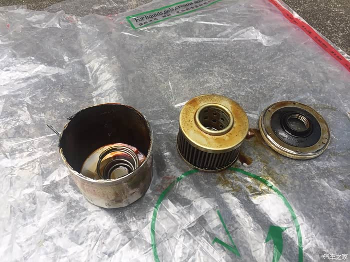 放完油,这是以前的车留下的旧机滤,我的拆下来就让师傅给我装起来了。