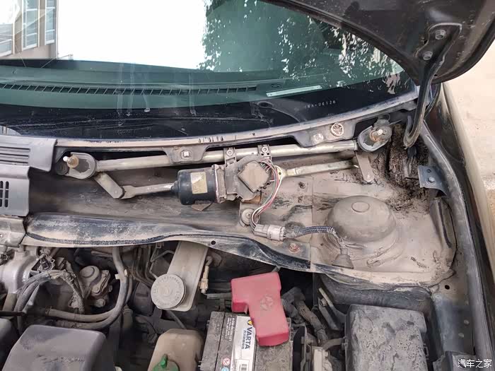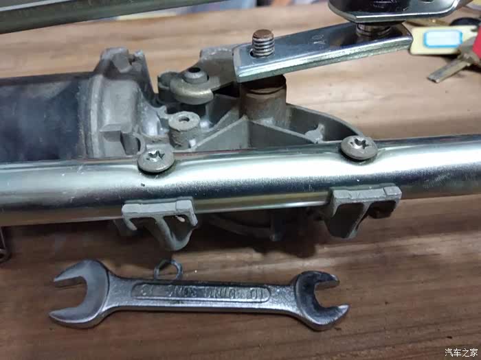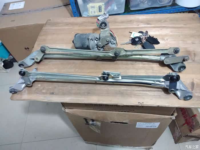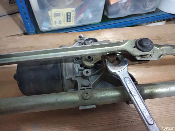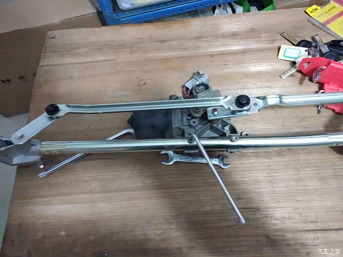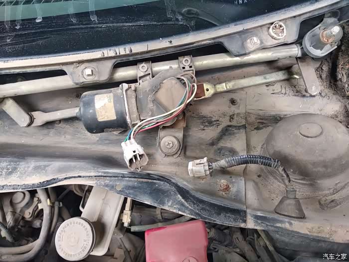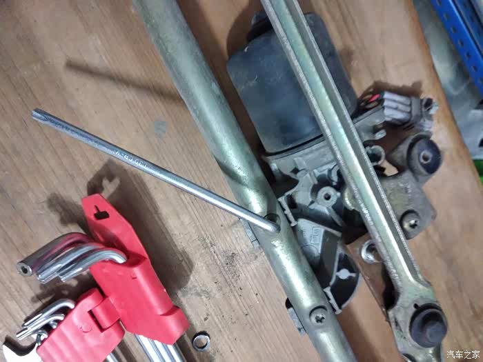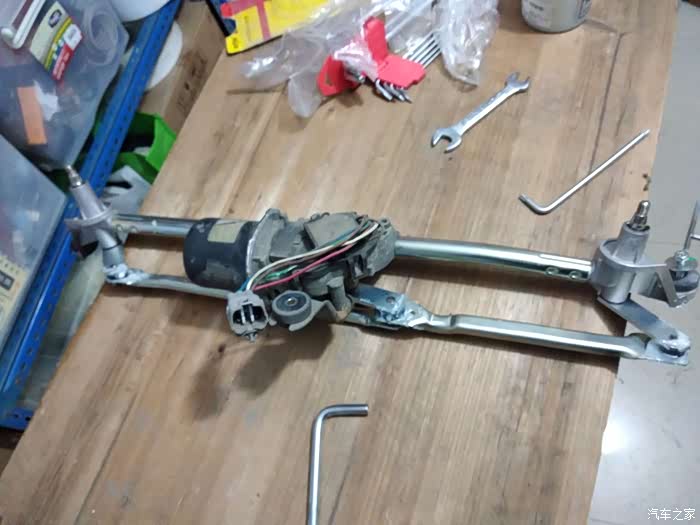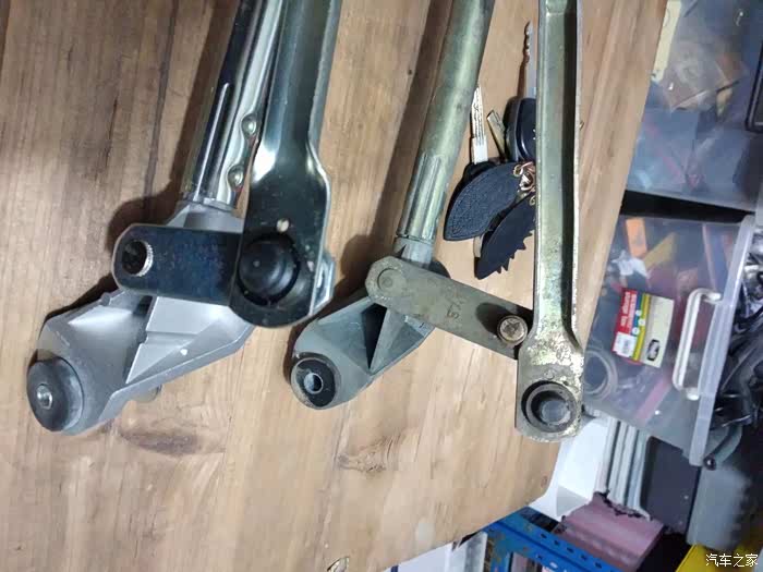 拆开之后的样子,可以看到脱开的位置,就是右边那个地方球头老化脱落了,所以主驾的雨刮不会动了