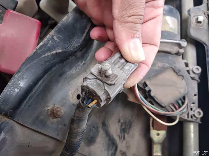 这个地方实际是一个橡胶盖子,用平头螺丝刀一撬就开,小心不要飞了,不好配。。。请忽略塑料件的颜色。本来是黑的,由于十几年的风霜雨雪就是这个样子