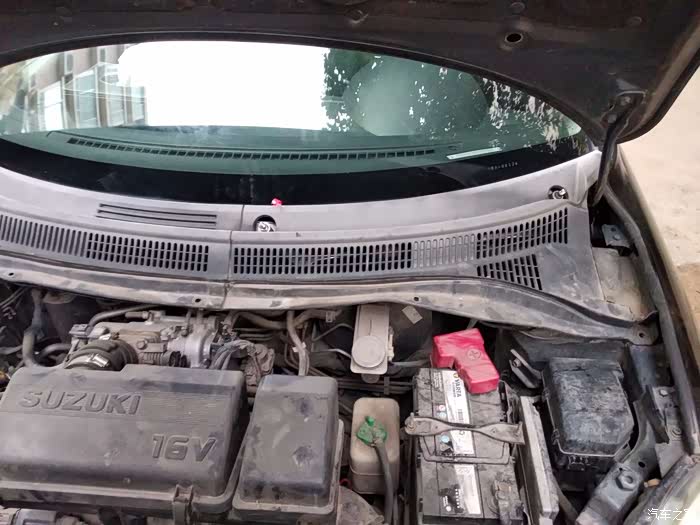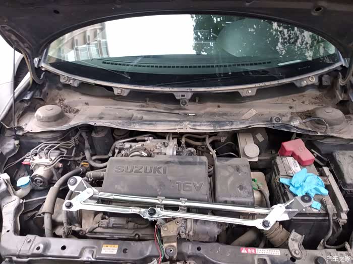 由于第二天预报下雨,看来必须赶在晚上以前搞好了,看了一下帖子,这个过程只需要一个10号的套筒,还有一个平头螺丝刀,一个13号的扳手就OK了,开工,这是开工前的样子