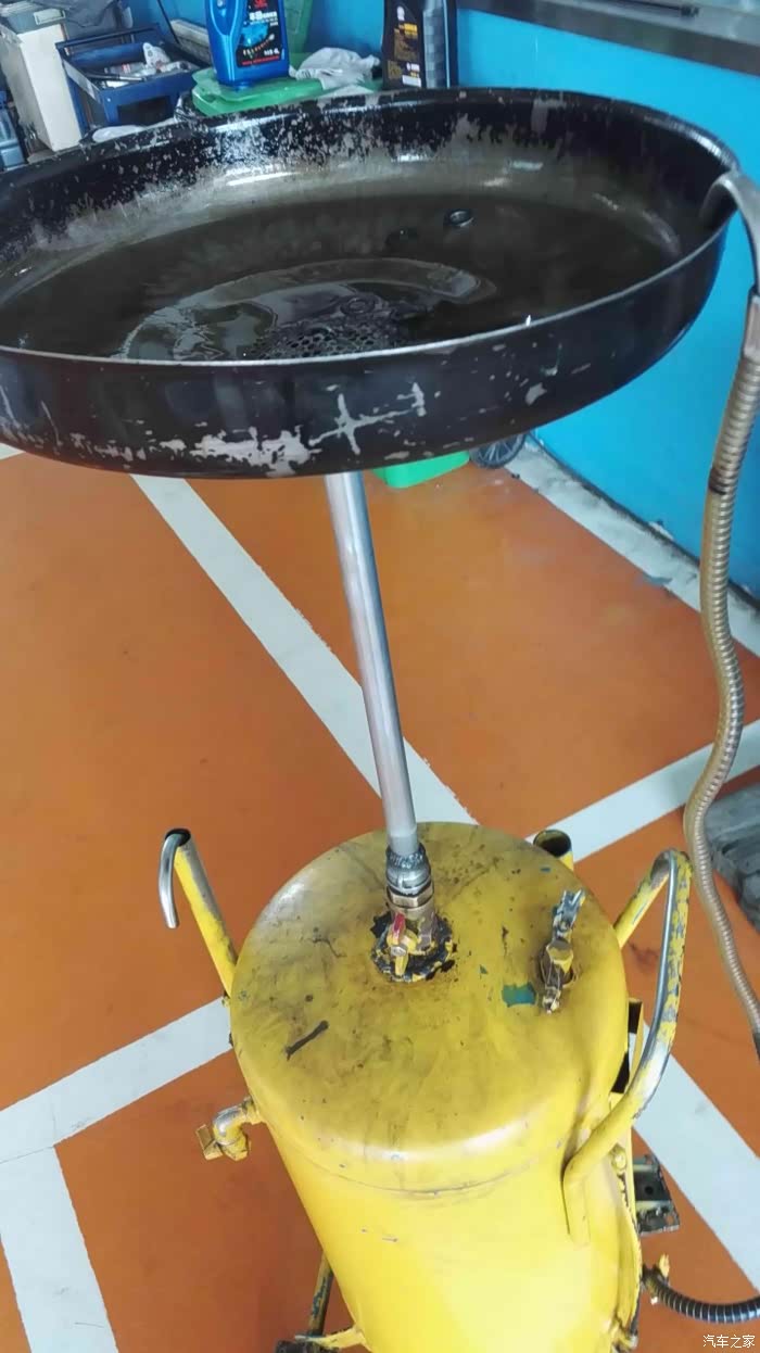 接好了专门接机油的桶。