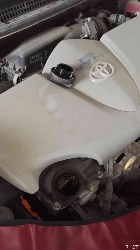 机油盖子打开了,准备灌入新机油。