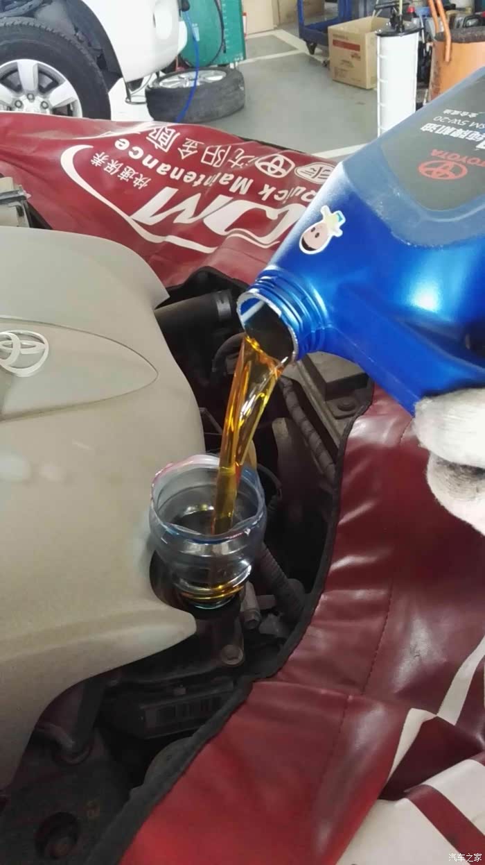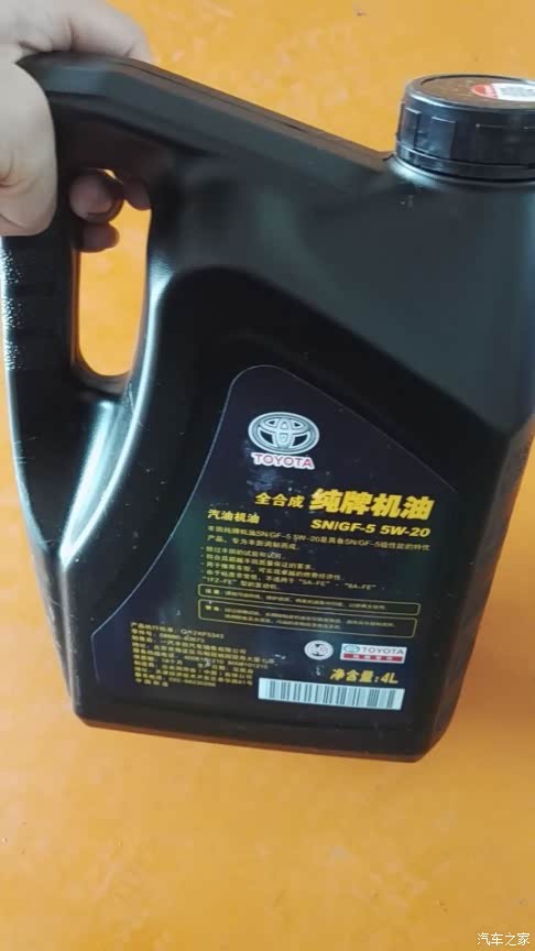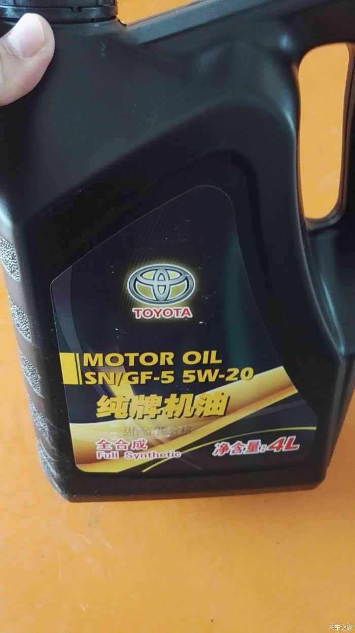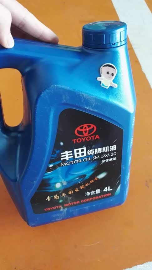 这是这次保养时4S店配的机油,因为我之前在4S店买的保养券每张券包含丰田纯牌5W-20的4L装机油一桶,机滤和工时费。