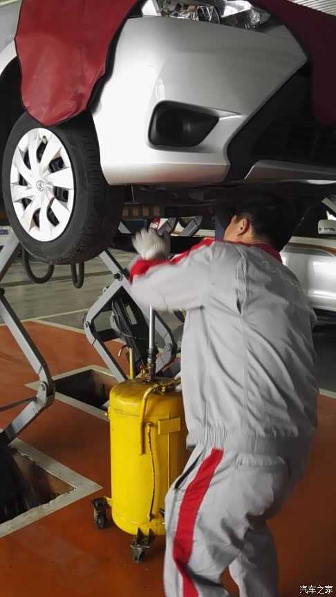 保养师傅开始释放原来的机油。