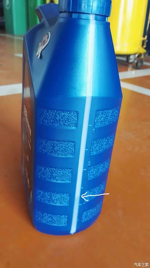每次小威加的机油大概只有3L左右,这是一桶4L装加完后剩下的量,大概1.25L左右,大家能看清吗?我用白色箭头特意把剩余量画了出来。