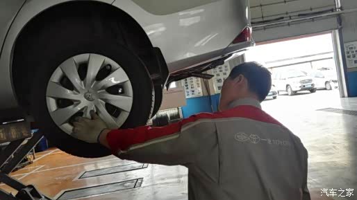 保养师傅正在检查小威的轮胎。