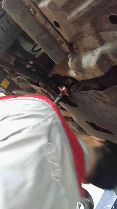 换完滤清器的小威被缓缓放了下来,准备下一步骤。