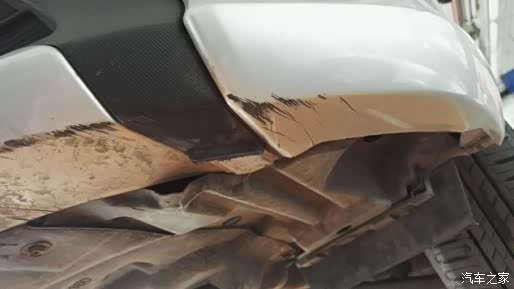 这几处伤痕都是前保险杠下面的,都是跑到路面较高的地方擦伤的,轿车的底盘还是低。好在擦伤都在下面,不趴到地上特意去看看不到,所以也不用维修。