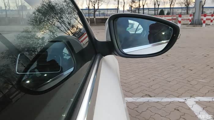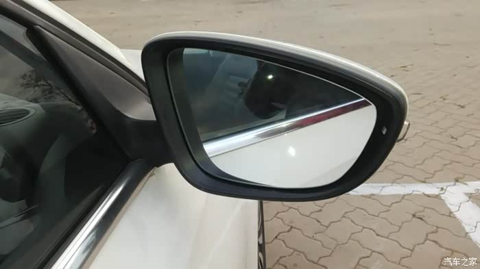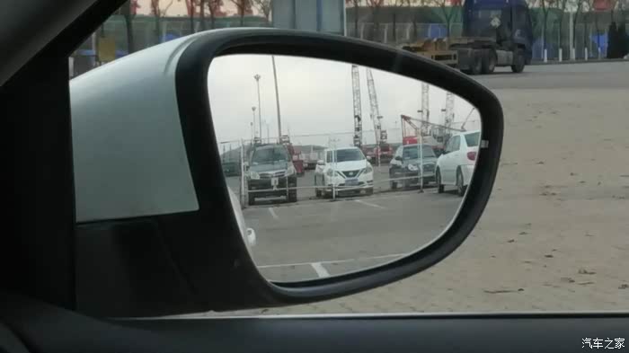 这个位置看的清楚一些,为了能在驾驶位置能看到车身,镜子调节的右侧开口很大。