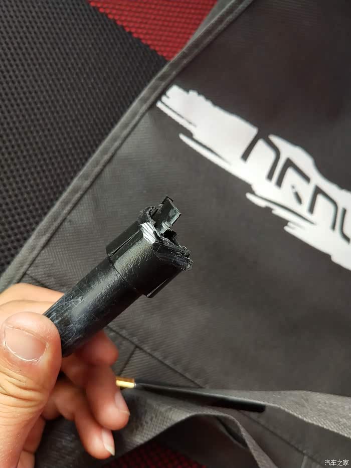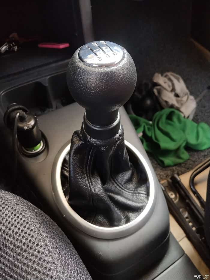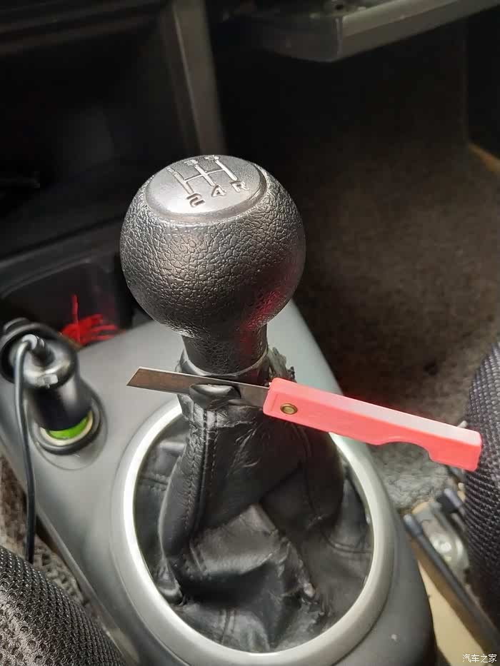 看论坛好多车友说挂四档,使劲往下拔掉排挡手球,我比较担心把档位弄坏,所以用美工刀一点点切割。黑色橡胶比较好切。