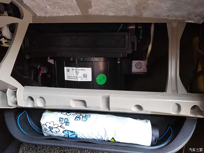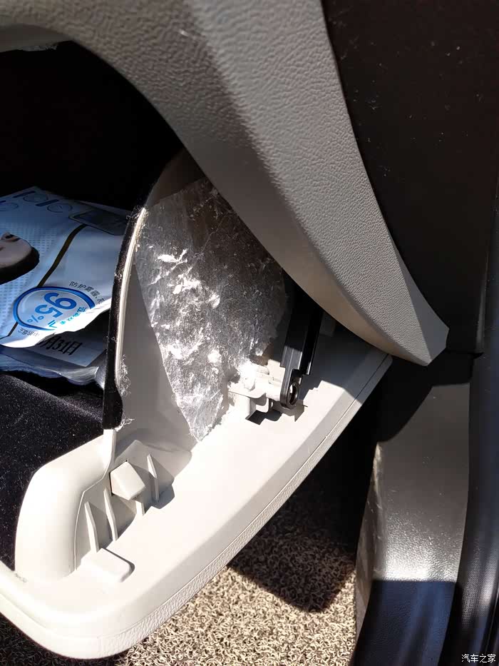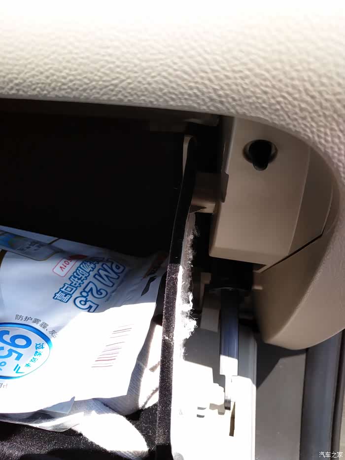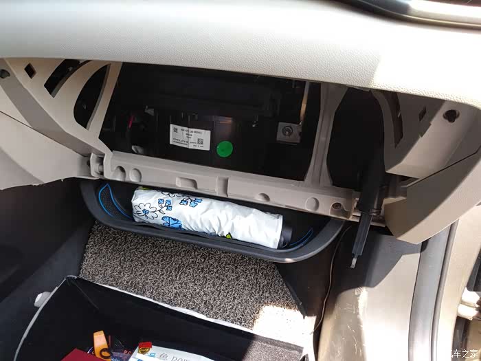 开始拆滤芯,新英朗的滤芯设计在储物箱后面,所以先要把储物箱拆掉。
