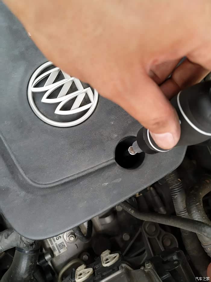 发动机盖板,用T25内六角拆下这个螺丝,然后拧下机油盖,往上抬就拿下发动机盖板了。