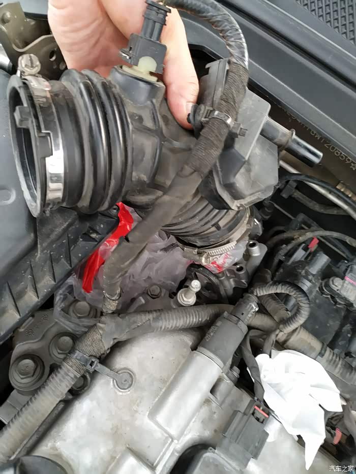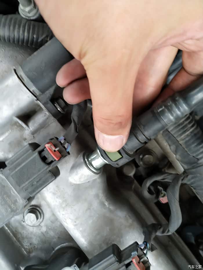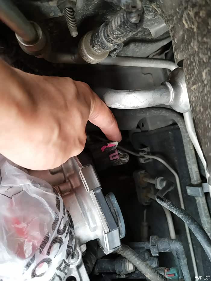 节气门插头,先把白色的那个往后拉出来再捏着插头往外拔。