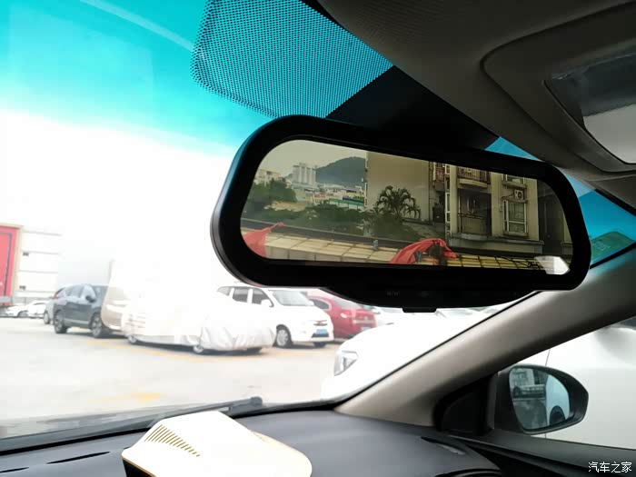 平时就是一个后视镜,在后台录像,扳一下下面按钮就切换程流媒体了,视野清晰度都不错,就是下雨就不不行了。