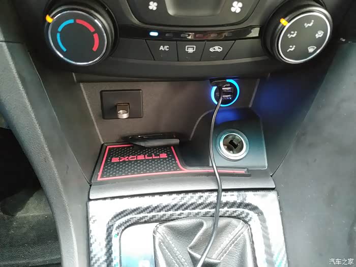 自己加装的USB插座,不想把U盘露到中控上,还有充电口,正常蓝灯充电变橘色,这个不好找网上改装件基本都是丰田的,通用的改装很少有市场。