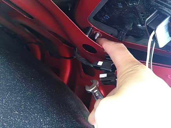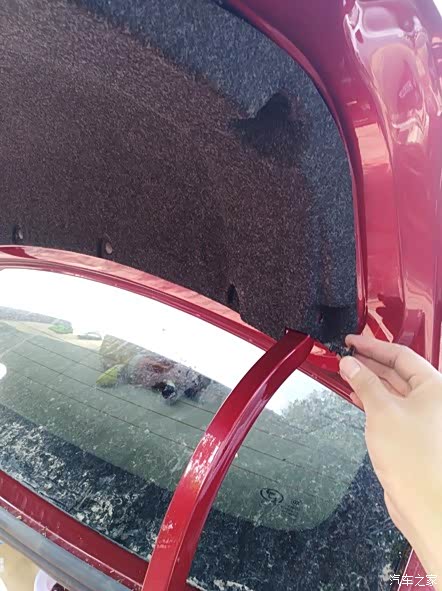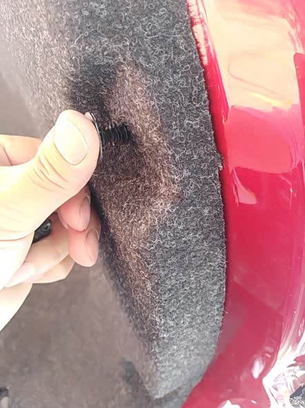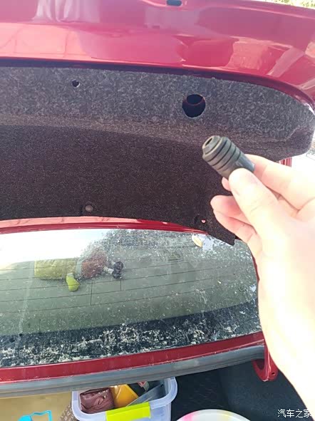 安装好塑料柱,注意与左边的长度达到一致,不然会导致尾箱盖关闭的时候受力不均匀