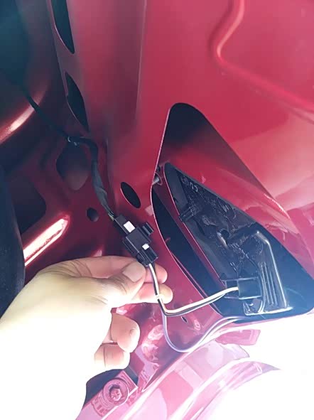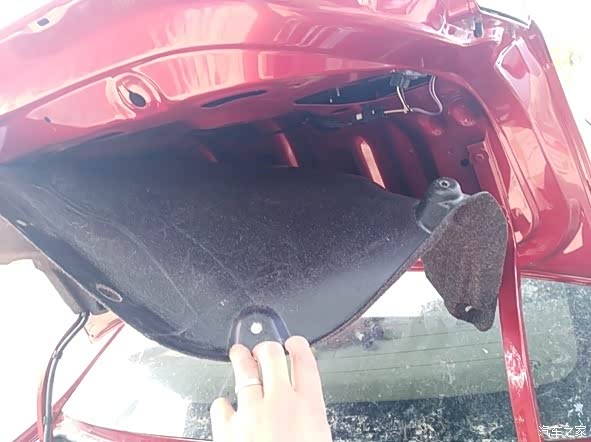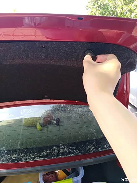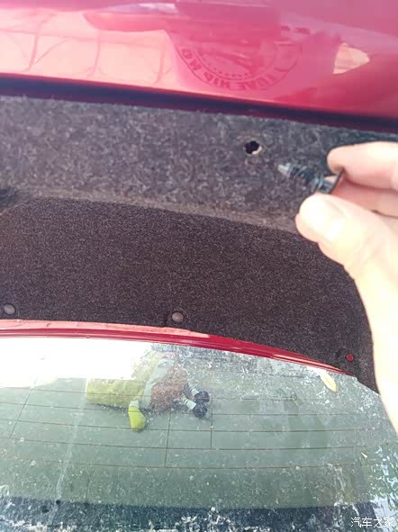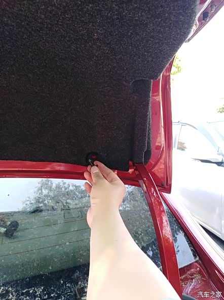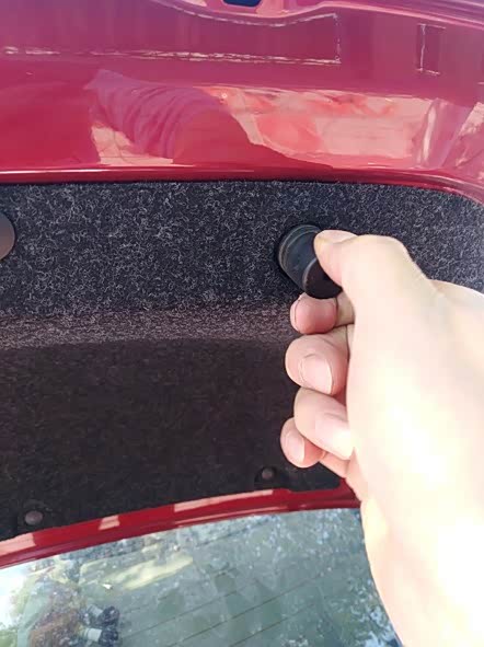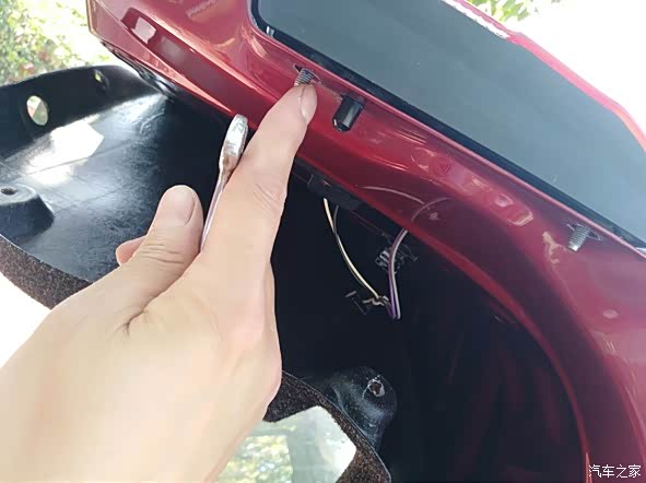 尾箱盖右边的塑料螺钉都取下后,这个塑料遮板就可以轻轻拉开了。看到没有,右内尾灯就呈现出来了。注意仔细看,右内尾灯有3颗金属螺钉哦。