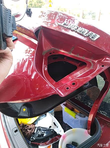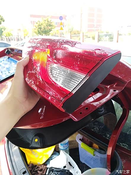 这个后盖打开后的效果,坏灯还是比较明显,没有办法,只有重新更换。眼尖的同学可能已经看到我尾箱里很乱了,还有准备好的尾灯了。