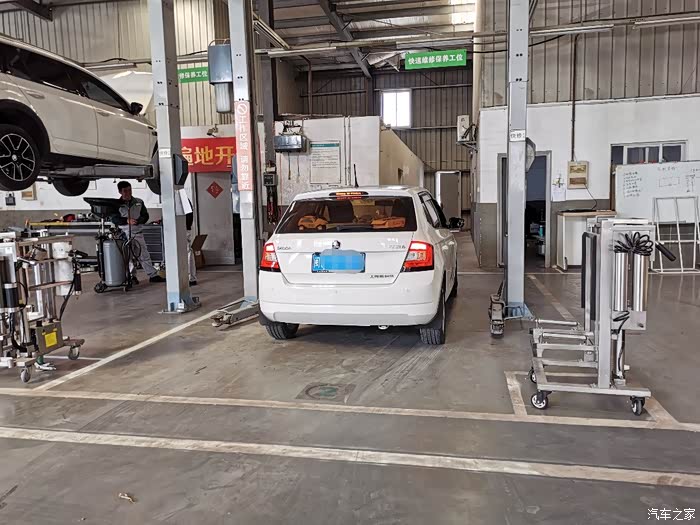 前一天晚上在官网公众号预约了保养,第二天早上就直接去了4S店,因为之前保养过三次了,也比较熟,停车,确认保养内容,签字画押后就坐等小晶锐上车间保养了。