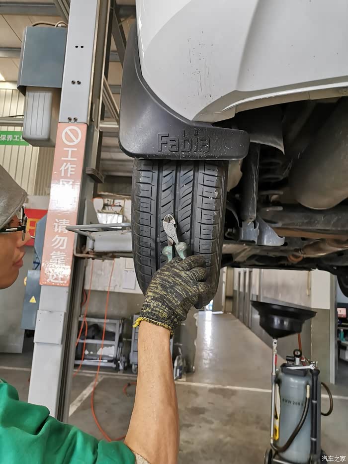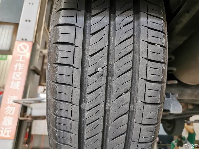 放油期间,保养小哥说轮胎扎到钉了,拔出来后,幸好是短钉,没有漏气。