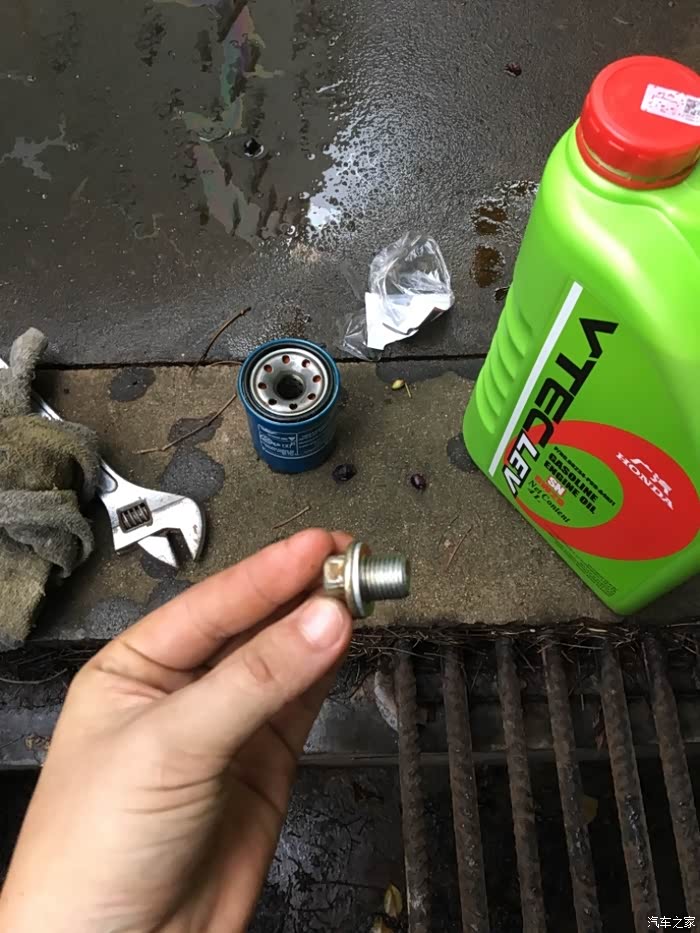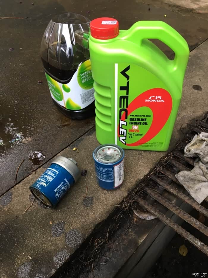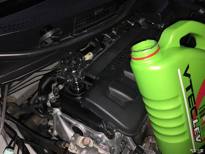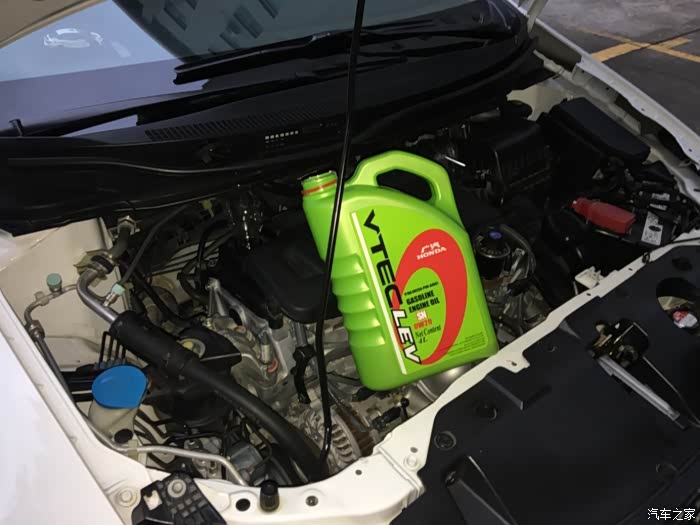 开始加新的机油,本田iv_VTEC汽油机专用机油,型号是0W20,SN级。