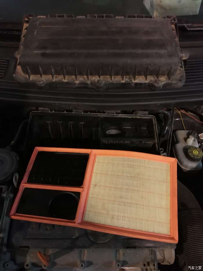 负压抽油的间隙,将空滤更换,五个螺丝,一个通气管,分别拆掉就能打开盖子,将废空滤拿出原位安装新空滤,清理好卫生 ,盖盖插管上螺丝。