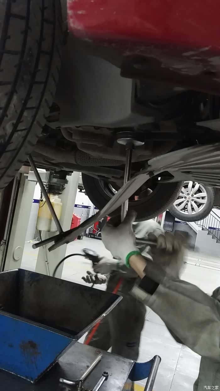 等油漏尽,残余的用抹布擦拭,上新机滤