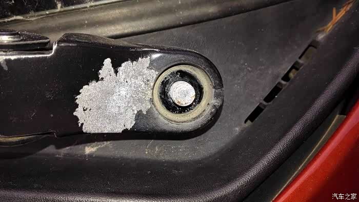 上图所示即为左侧雨刮摇臂和连杆连接处的球头脱落损坏。