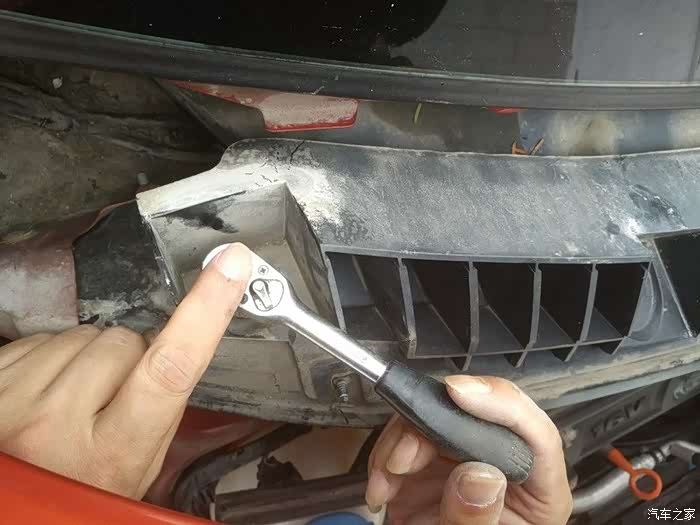 拆除雨刮连杆总成支架上面的塑料覆盖件。