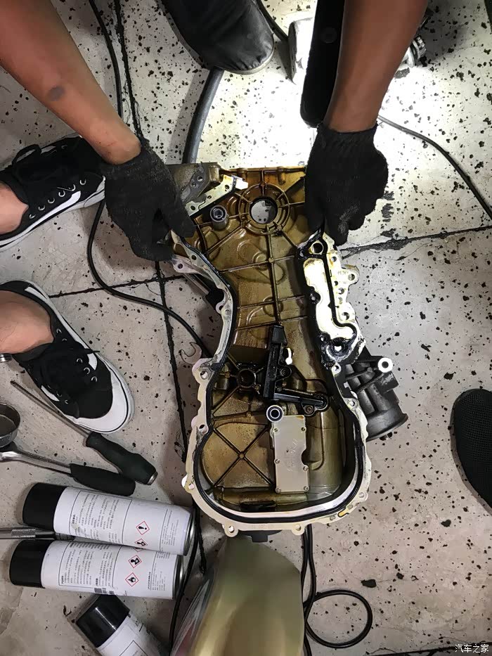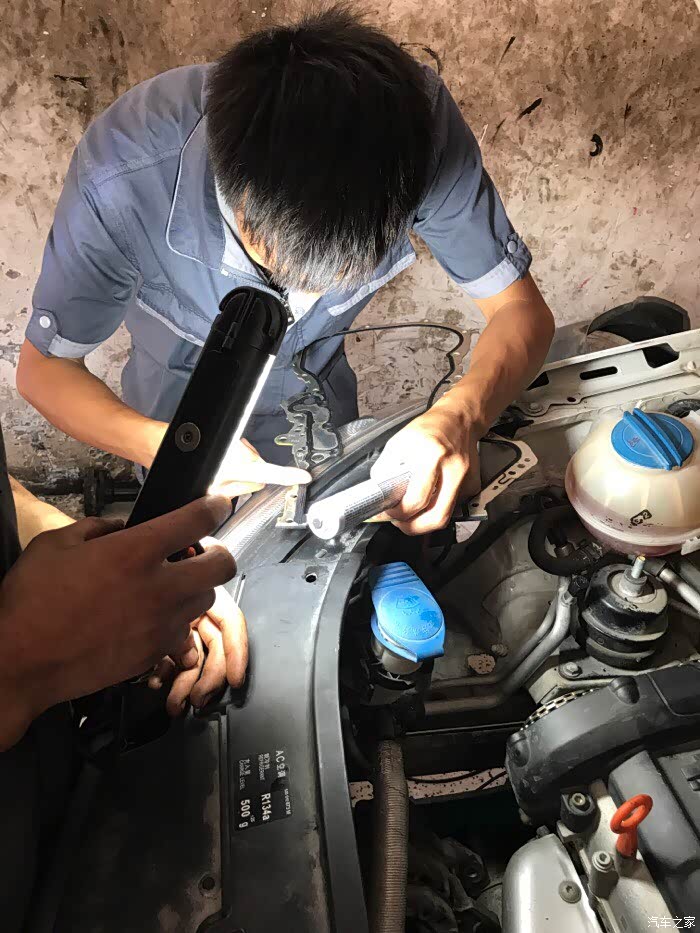 新旧对比等啊等啊.小师傅继续清洗.必须清洗得干干净净。