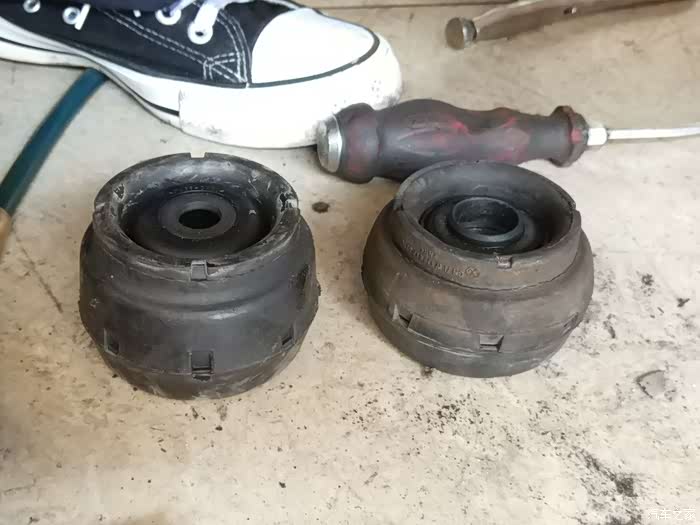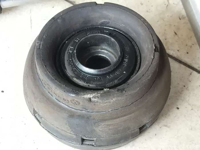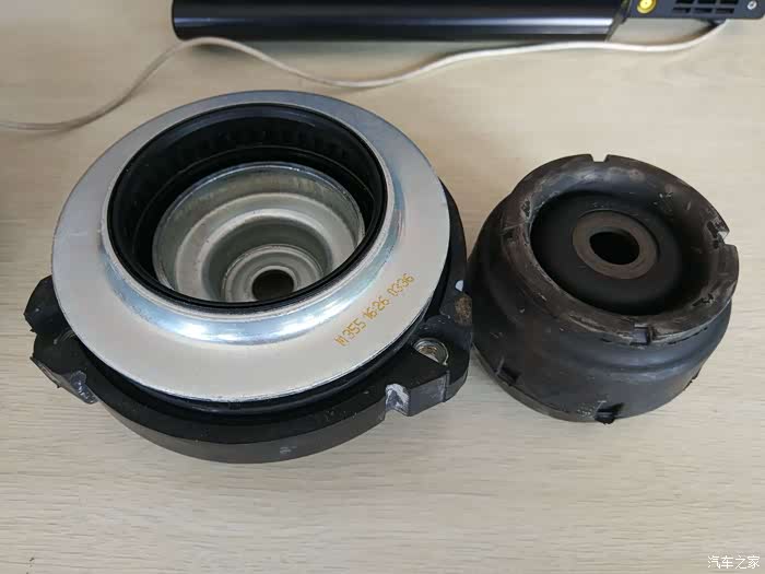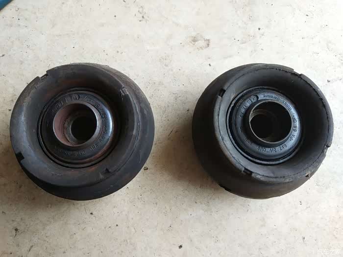 左边是08年之前,四眼Polo的平面轴承&顶胶组合,硬橡胶和金属的结合体给人坚固耐用、高端大气的感觉;右侧应该是08年起,沃尔夫斯堡对旗下车型配件整体降低30%成本之后,Polo和Fabia这对表兄弟用的平面轴承&顶胶了
