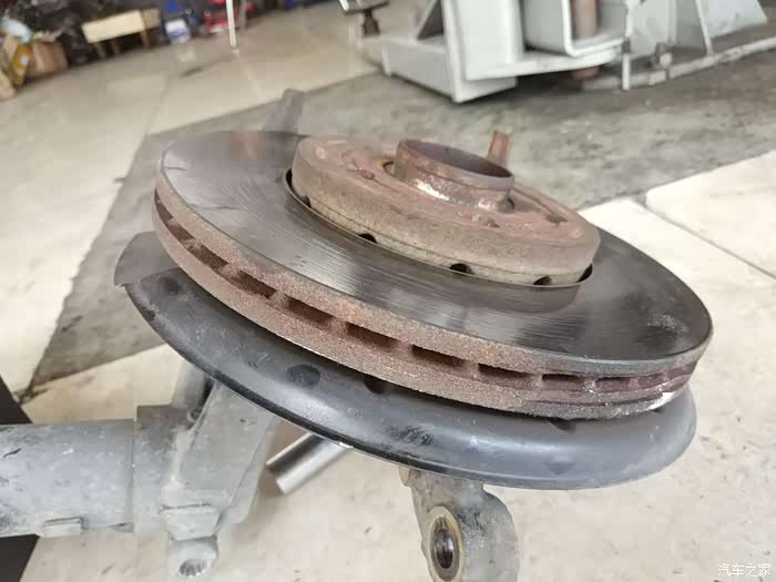 见缝插针,检查下刹车盘片,磨损还行----谁让我原厂刹车片儿还厚的不行