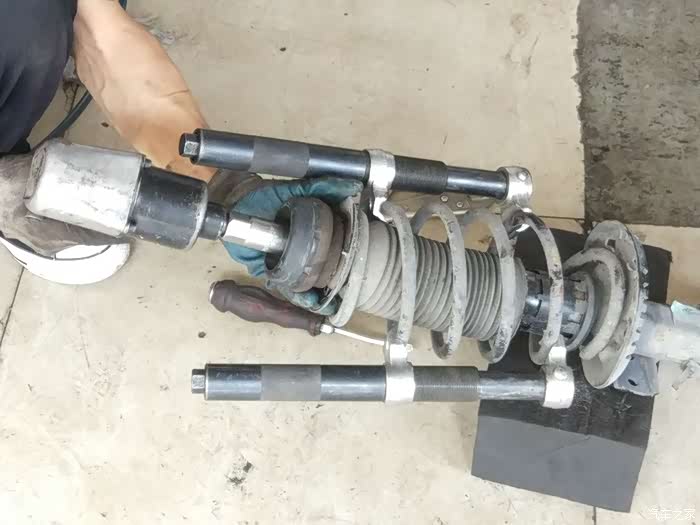 这是小师傅在压缩减震器。